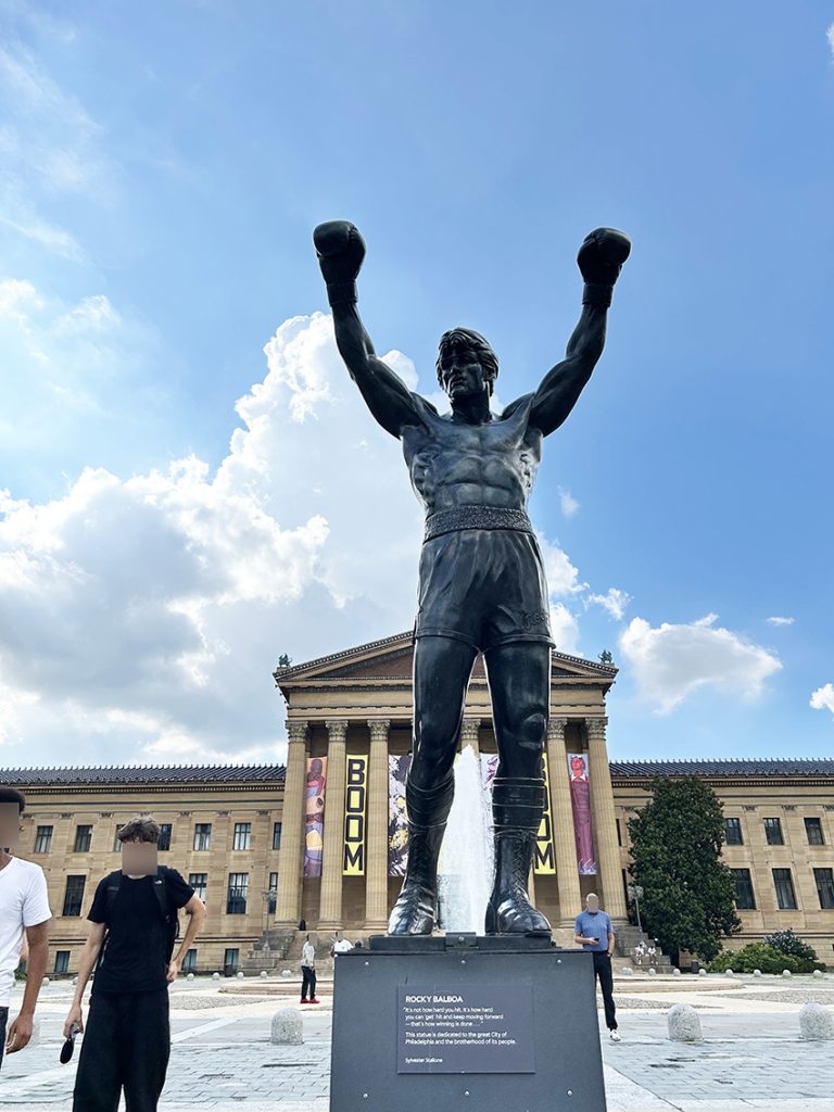 Pour terminer cette mémorable journée à Philadelphie, un petit tour auprès d’un héros du pays, j’ai nommé Rocky Balboa ! Oui, ce film a été tourné en 1976 ici, à Philadelphie. Vous souvenez-vous des énormes escaliers que Rocky gravissait lors de ses entraînements ? Nous y étions. Avec, en prime, une statue du célèbre boxeur ; la fiction rejoindrait presque la réalité !